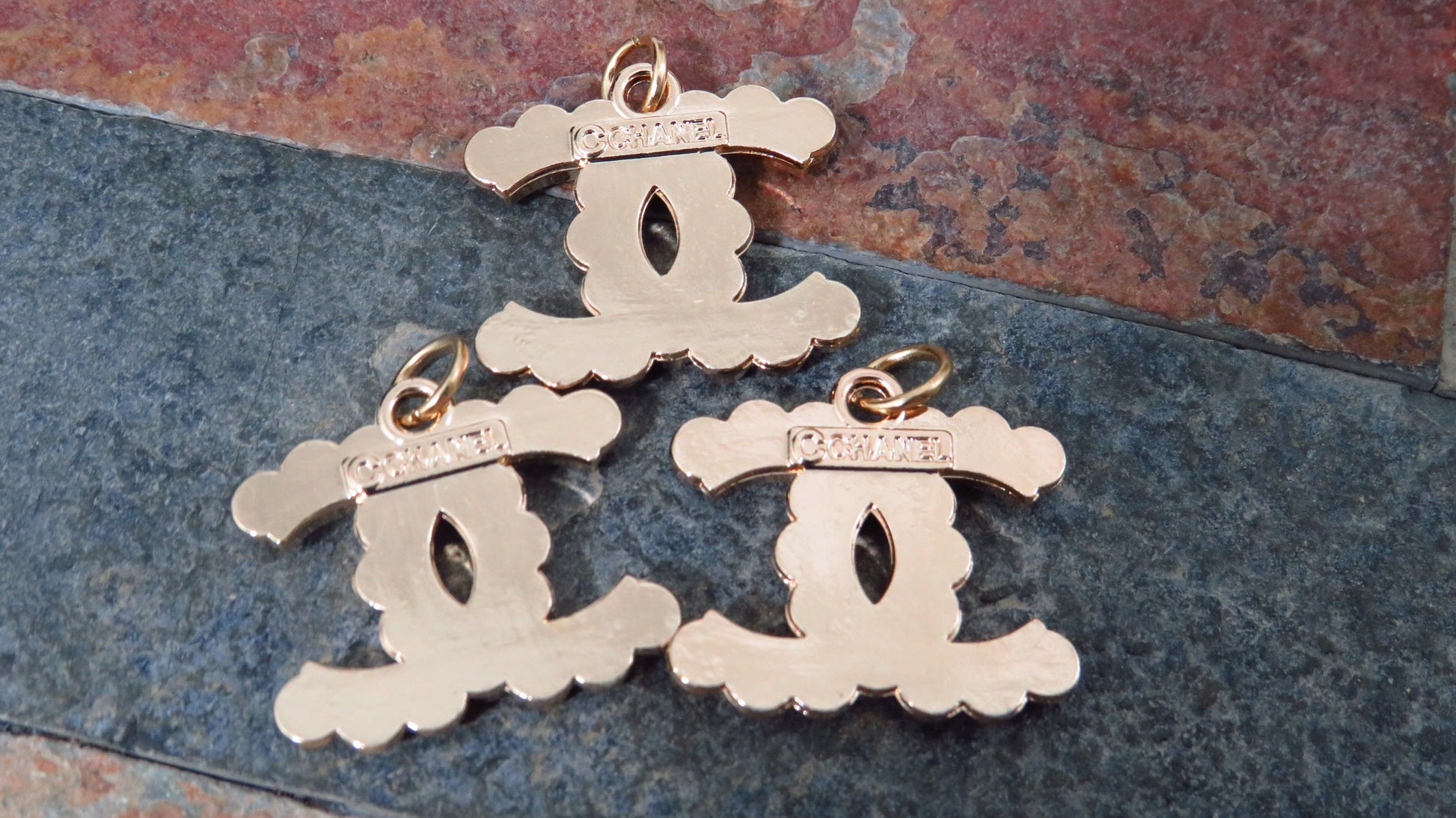 Bundle Of 3 Chanel Black And White Rhinestone Lined Gold Tone Zipper Pulls!