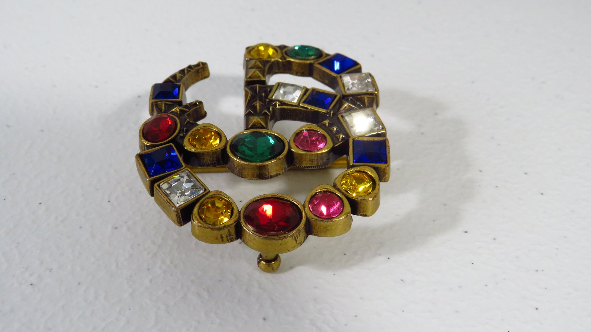 Gucci Colorful Rhinestone Lined Brass Belt Buckle For Women!