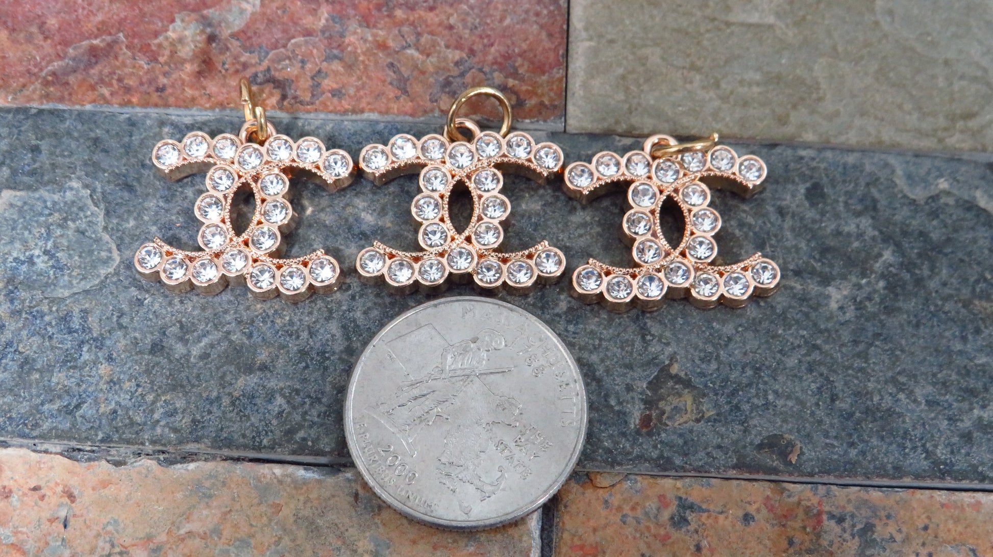 Value Bundle Of 3 Chanel Gold Tone Clear Rhinestone Lined CC Zipper Pull Charms!
